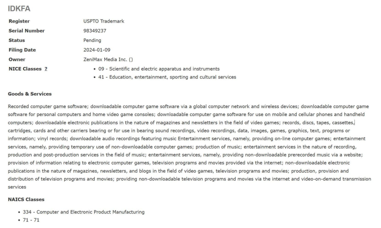 Çevrimiçi platformlarda, yakın zamanda Doom henüz duyurulmamış gösterge oyunu hakkında gazetecinin iddialarına kısmi bir doğrulama bulundu. Kullanıcılar, ABD’de yeni bir ticari markanın kaydına dikkat çekti. Belgeler, shooter geliştiricilerinin dahil olduğu ZeniMax şirketinin adına kaydedilmiş, aynı zamanda patentin adı “IDKFA” olarak geçiyor. İlk bakışta sadece harflerden oluşan bir isim gibi görünse de “IDKFA” başlığı, aslında Doom serisinin hayranlarına tanıdık gelecek bir hile kodu.